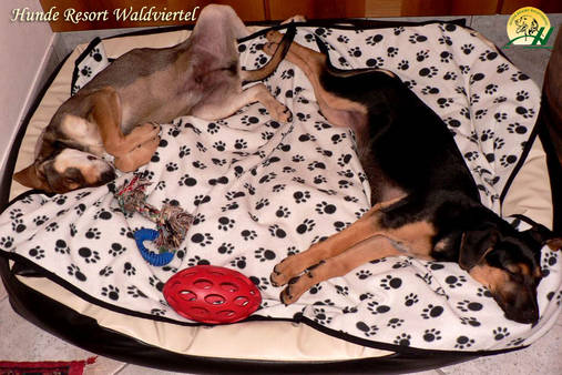 In unseren beiden Häusern in Form eines Vierkanthofes mit ca. 300 m² Wohnfläche und Innenhof können sich die Hunde frei bewegen. Sofern die Hunde nicht am großen Gelände unterwegs sind, steht Ihnen ein direkt am Wohngebäude angeschlossener Garten mit ca. 1.000 m² zur Verfügung. In beiden Häusern sind verschiedenste Hundekörbe oder -betten verteilt, damit unsere Hunde genug Ausweichmöglichkeiten haben.